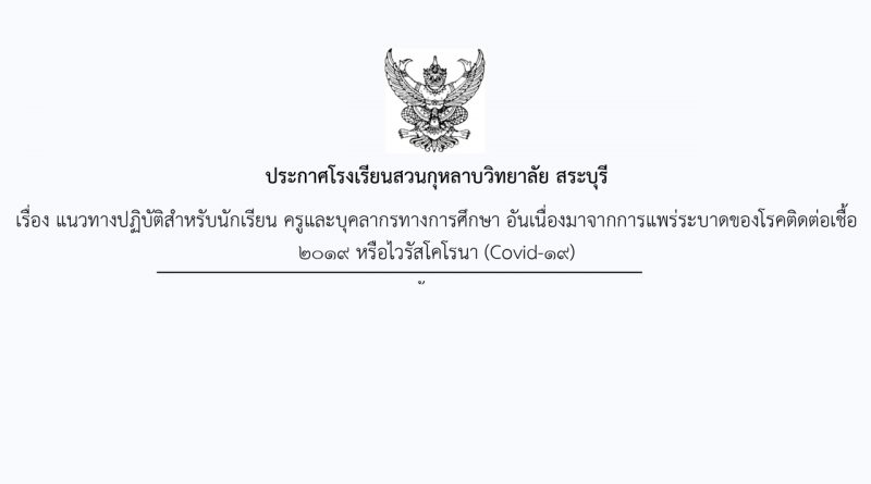 ประกาศโรงเรียนสวนกุหลาบวิทยาลัย สระบุรี ประกาศโรงเรียนสวนกุหลาบวิทยาลัย สระบุรี เรื่อง แนวทางปฏิบัติสำหรับนักเรียน ครูและบุคลากรทางการศึกษา อันเนื่องมาจากการแพร่ระบาดของโรคติดต่อเชื้อ ๒๐๑๙ หรือไวรัสโคโรนา (Covid-๑๙) Monday 21 December 2020Monday 21 December 2020 นางสาวอรณี แก้วเพิ่ม 0 Comments https://drive.google.com/file/d/1PuZkR64GYliI7kTEJrgceP0g806gEYeh/view?usp=sharing