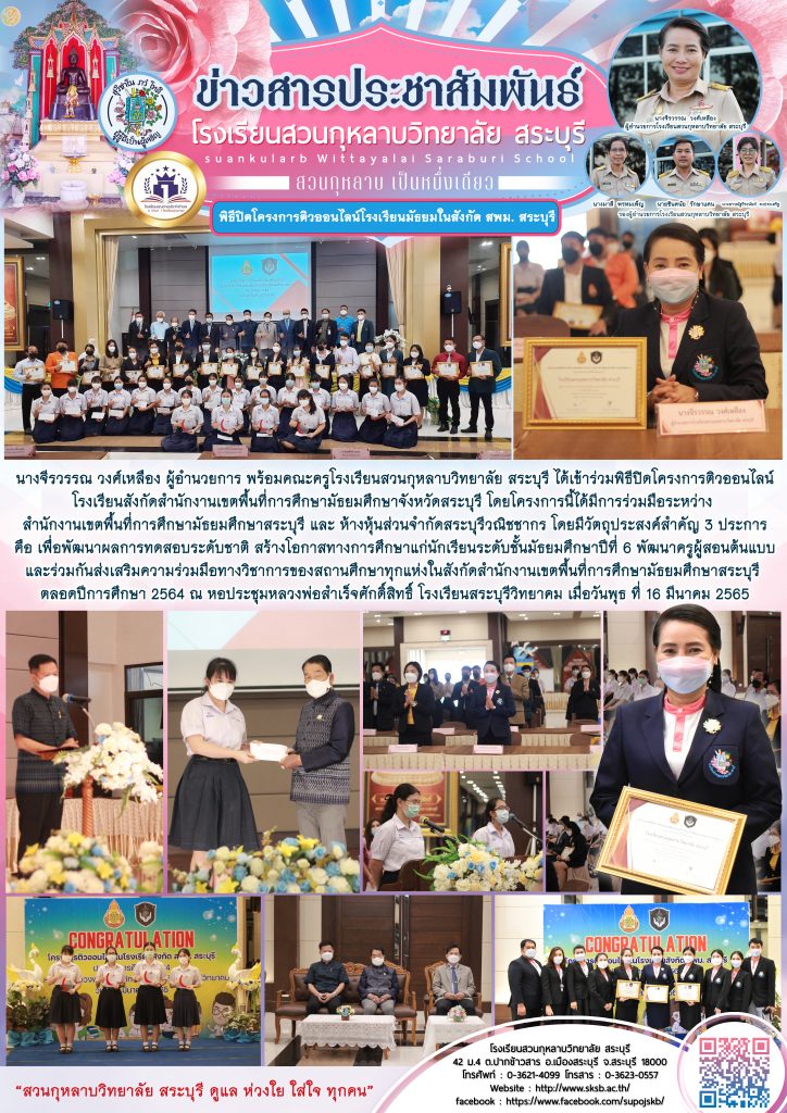 - ประกาศรายชื่อนักเรียนที่ผ่านการสอบคัดเลือกเข้าศึกษาต่อชั้นมัธยมศึกษาปีที่ ๑ และชั้นมัธยมศึกษาปีที่ ๔ ห้องเรียนพิเศษ ปีการศึกษา ๒๕๖๕