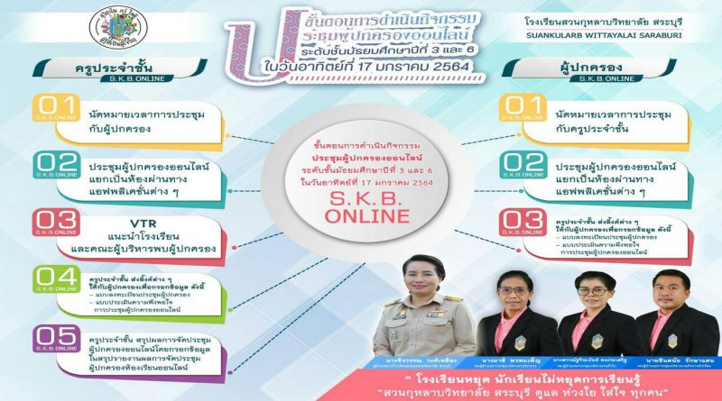รอบรั้วโรงเรียนเรา วันอาทิตย์ที่ 24 มกราคม 2564 นางจีวรรณ วงศ์เหลือง ผู้อำนวยการโรงเรียนสวนกุหลาบวิทยาลัย สระบุรี พร้อมด้วยรองผู้อำนวยการ และคณะครู ได้ดำเนิกิจกรรมประชุมผู้ปกครองออนไลน์ ในระดับชั้นมัธยมศึกษาปีที่ 1,2,4 และ 5 Saturday 23 January 2021Saturday 10 April 2021 นางสาวอรณี แก้วเพิ่ม 0 Comments Read more