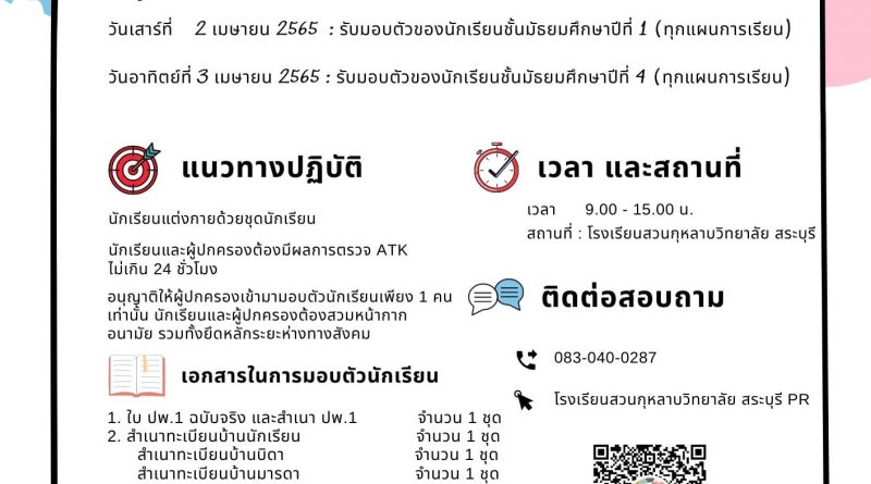 Read moreกำหนดการรับมอบตัวนักเรียน ม.1 ม.4 ปีการศึกษา2565
