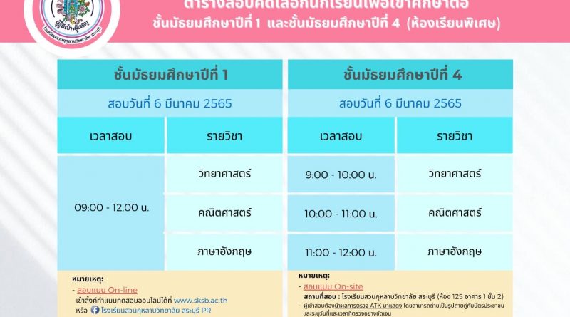 Read moreโรงเรียนสวนกุหลาบวิทยาลัย สระบุรี เปิดรับสมัครนักเรียน ม.1และม.4 ปีการศึกษา 2565(ห้องเรียนปกติ)ด้วยระบบonline