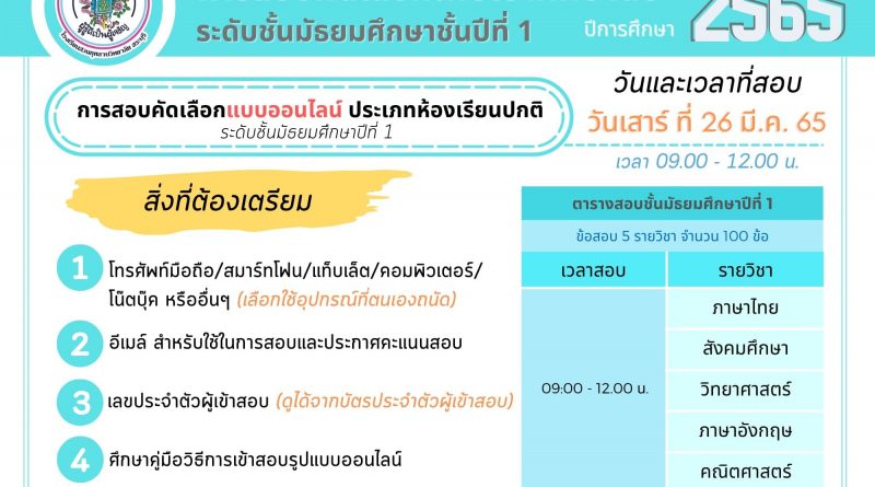 การสอบคัดเลือกนักเรียนเพื่อเข้าศึกษาต่อ ชั้นมัธยมศึกษาปีที่1 (ห้องเรียนปกติ)